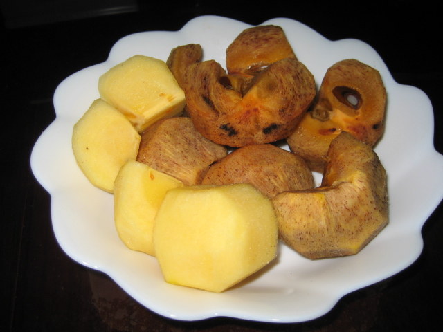 土曜日ですが、柿を収穫しました。 まだ少し青いですが、渋柿なので一週間ほど焼酎につけて「シブ」を抜きます。 今年は、量も大きさも平年以上です。 理由としては、4月に上を覆っていた「枝垂れ桜」を切ったからだと思います。 日当たりや風通しなど、環境がだいぶ良くなり、「イラガ」という毛虫も発生しませんでした。 ちなみに、この「柿の木」は樹齢100年以上で、この庭で一番の古木です。