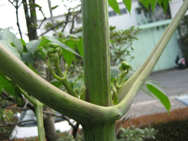 春先に植えた「ダリア」の球根が、つぼみをつけました。 ダリアを植えたのは初めてで、いまいち育て方や咲かせ方も分かりません。 途中で剪定して、たくさん咲かせる事もできるらしいのですが… とりあえず、支柱だけ立てて様子を見ようと思います。