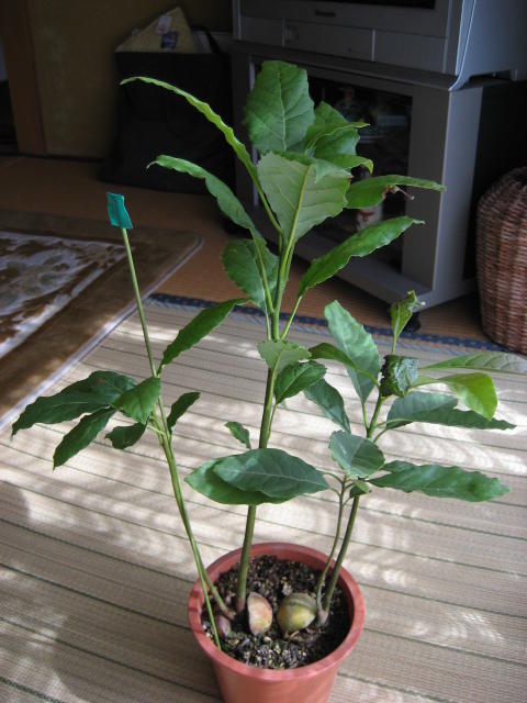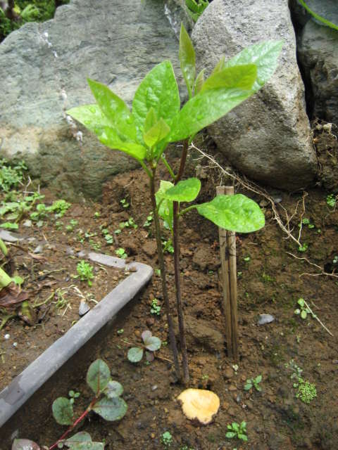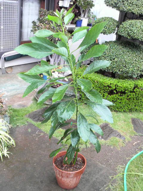 昨年の8月に発芽した「アボカド」です。現在90cmあります。 2本発芽したのですが、一本は冬を越せずに枯れてしまいました。 夏場は半日陰で管理しないと、しなびてしまいます。まだ苗なので、けっこう管理に気をつかいます。 ←昨年11月 ←昨年9月
