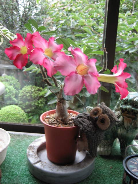 キョウチクトウ科の多肉植物です。3年ぶりに開花しました。 キョウチクトウの仲間なので、有毒性があります。 葉や幹を素手で触って、目をこすったりすると文字通り「痛い目」にあいます。