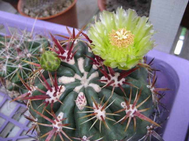 最近咲いた、黄色の花サボテン達です。現在も咲いてるものもあります。 ←花笠丸? ←フェロカクタス(巨鷲玉?) ←パロディア? 気のせいか、夏は黄色の花のサボテンが多いです。逆に冬はピンクが多い感じです。
