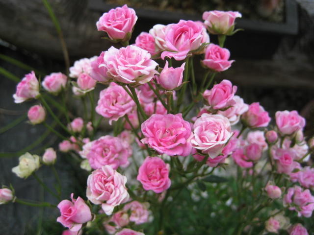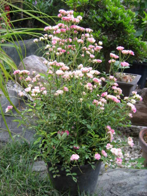 普通のミニバラの1/5くらいですが、近くで見るとしっかりとバラの形をしています。 花が終わったら、短く切り詰めます。 夏、明るい日陰で管理するようにしてから、毎年咲くようになりました。