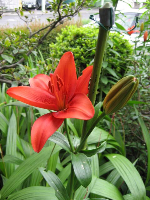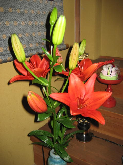 詳しくは「スカシユリ」だと思います。 球根を植えてから、5~6年咲き続けています。 花が3つくらい開いたら、切花にして室内や仏壇に飾ります。 下から順に、すべてのつぼみが開きます。