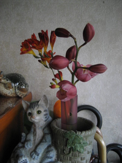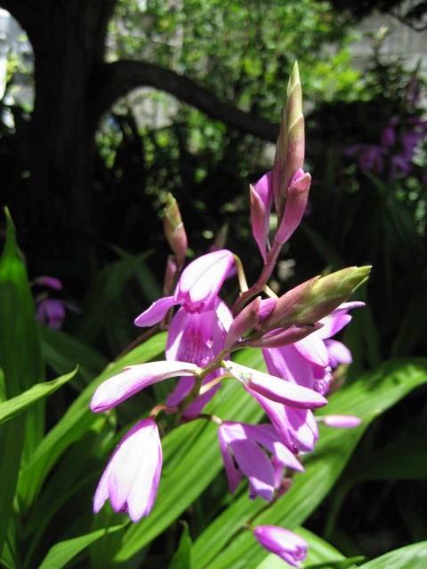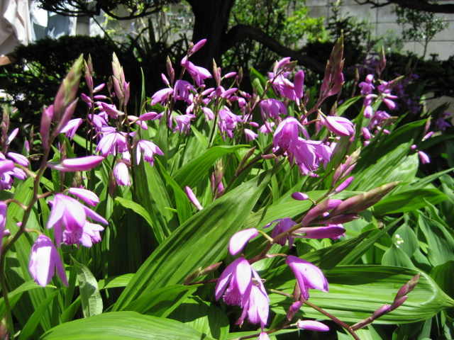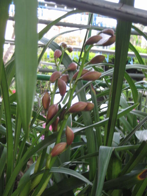 ラン科の植物で、「偽球茎」という球根みたいな根を持つ植物です。 冬には葉が枯れて無くなります。 丈夫な種類で、株分けで増えます。