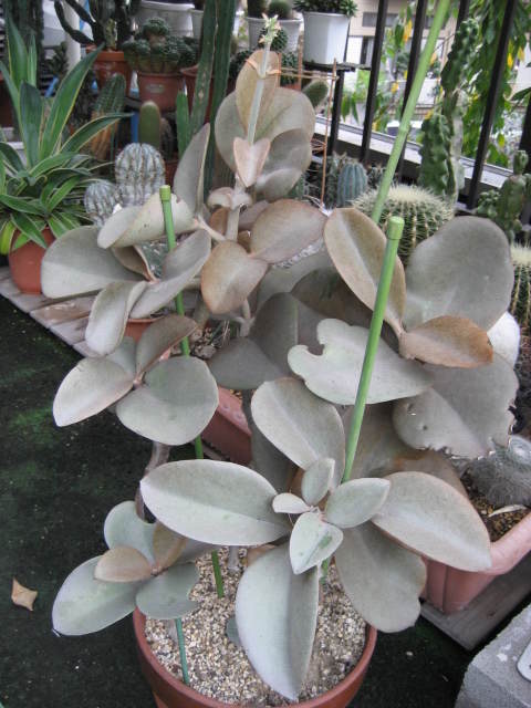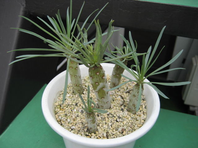 春先の嵐で、茎が折れたやつですが、 もったいないので挿しておきました。 現在、5本とも新しい葉が出てきてます。 親木の方は、開花しています。 茎に触れると、幸福が訪れるらしい…