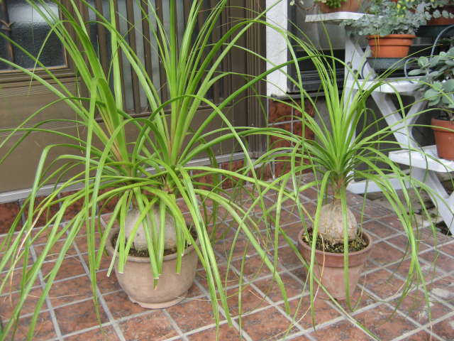 3年ほど前、スーパーの生花売り場で¥198で購入したものです。 二つとも同じ大きさだったのですが、幹が2つに分かれている事もあり 左の方は2倍の大きさに育っています。 植物園などでは、トックリの部分の直径が50センチ以上あり 高さが2~3メートルなんていうのもよく見かけます。 夏場は戸外で放っぽらかして、適度な水やりと施肥をしています。 とりあえずの目標は、直径30センチです。