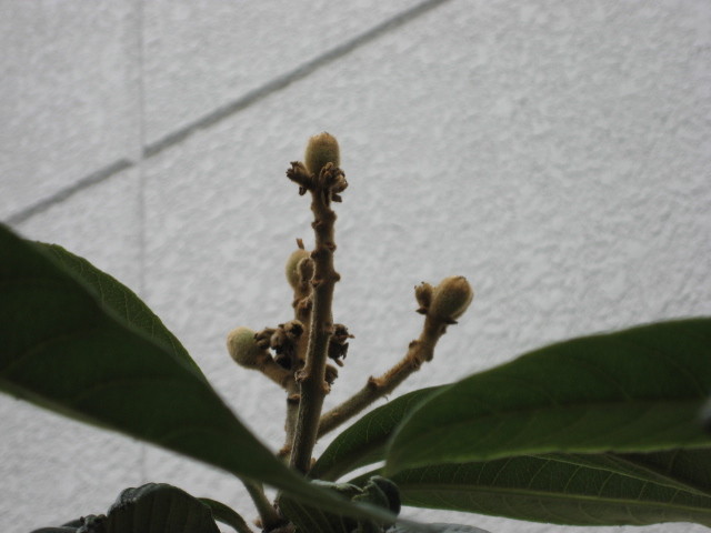 こないだ紹介した、鉢植えの「ビワの木」です。はじめて開花して、実がついたヤツです。