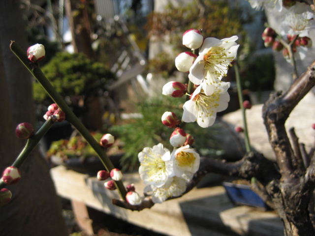 鉢植えの梅が咲き始めました。
