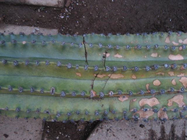 転倒の衝撃で、幹の2箇所に致命的な割れ目ができてしまいました。かなりショックです。