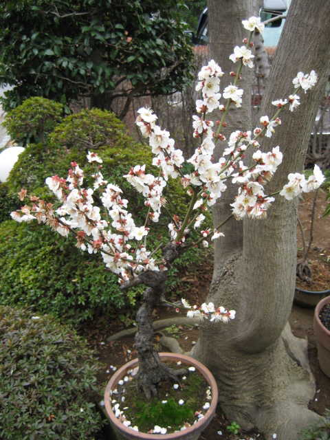 鉢植えの梅は満開です。