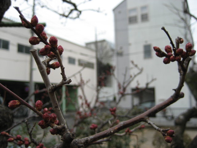 先月移植した大きい梅の木は、まだ開花していませんが、つぼみがしっかりと膨らんできています。