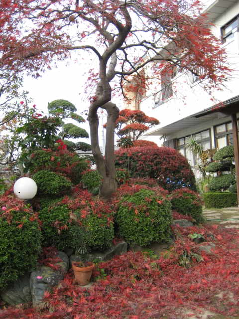 左下の玉つくりは、ドウダンツツジです。燃える様な「赤」です。